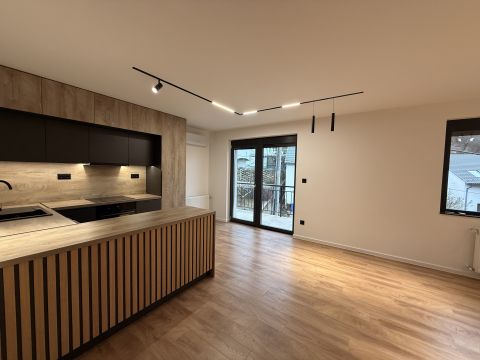 Az ingatlan elosztása amerikai konyha nappali+ 2 szoba, beépített gardróbbal, külön fürdő és wc, 70m2 kizárólagos KERTKAPCSOLAT és 700m2 közös kert.