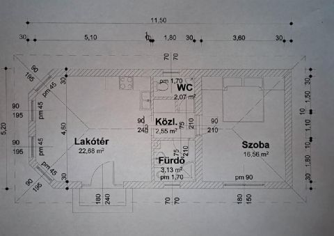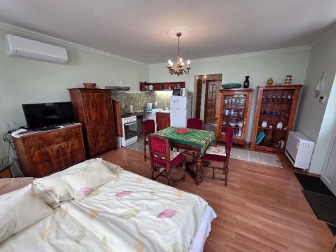 -Helyiségek: amerikai konyhás nappali, közlekedő, fürdő, WC, szoba