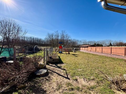 -füvesített hátsó udvar játszótérrel