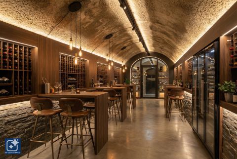 Ez a 1556 m²-es, 4 méter belmagasságú, targoncázható főággal és 8 mellékággal rendelkező pincerendszer az utóbbi kategóriába tartozik.
