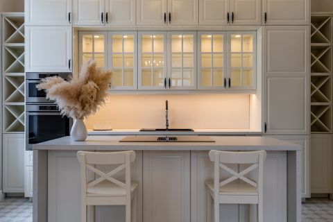 Karakteres, mégis időtálló belsőépítészeti világ jelenik meg a részletekben. Fa burkolatok, strukturált felületek, finom klasszikus utalások és több szintű hangulatvilágítás adják a lakás tónusát. Könnyű hozzá illeszkedni, és könnyű továbbvinni saját ízlés szerint.