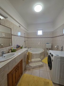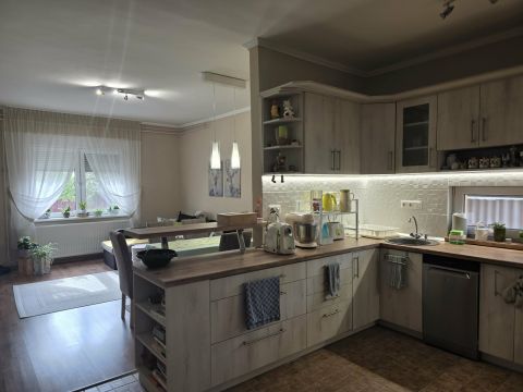 Az egész házra jellemző a praktikus elosztás és kihasználás. Az ingatlanba belépve egy igényesen kialakított előszobát, egy különleges tervezéssel, minőségi anyagokból készült amerikai konyha-étkezőt, és egy nappalit pillanthatunk meg. A ház további három különnyíló szobával, 2 fürdőszobával és kamrával rendelkezik. Az udvaron egy nagyméretű garázs is található, melyben a 3 fázis bent van.