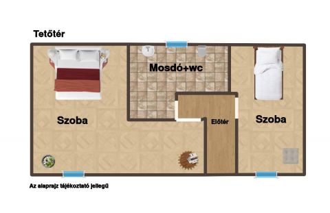 A tetőtéri szobák napfényesek, barátságosak, ideálisak hálónak, gyerekszobának vagy akár dolgozószobának is.