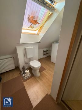 emeleten: két világos szoba + külön WC/mosdó