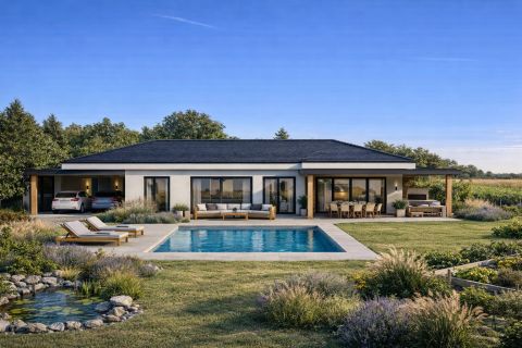 Az ingatlan belső tereit természetes fény árasztja el, ami a nagy ablakoknak és a kedvező tájolásnak köszönhető. A nappaliban és a hálószobákban is élvezheti a látványos panorámát, amely a környező táj természetes szépségébe engedi be az otthonát. A tágas, jól megtervezett elrendezés lehetővé teszi, hogy mindenki megtalálja a számára ideális pihenő, vagy éppen munka helyet.