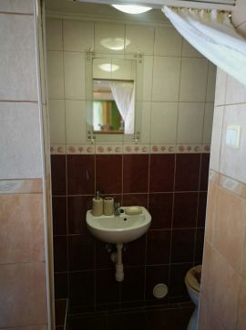 Konyhája és használatban lévő fürdőszobája egy kis melléképületben van, amely 22 m² . Ez is szigetelve és színezve lett.