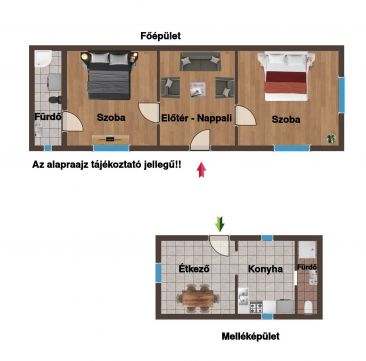A főépületben 3 egymásból nyíló szoba és egy vizes helyiség lett kialakítva, ami befejezésre vár.