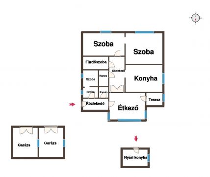 A 90 nm-es főépület mellett egy 10 nm-es nyári konyha, valamint egy körülbelül 40 nm-es garázs is megtalálható, így a gazdálkodásra vagy akár állattartásra is alkalmas lehet a birtok. Az épület falazata vegyes, nyílászárói fából készültek, az ingatlan felújítást igényel, azonban szerkezeti állapota stabil, így jó alapot biztosít a saját elképzelések megvalósításához.
