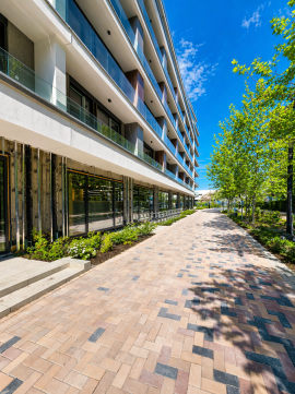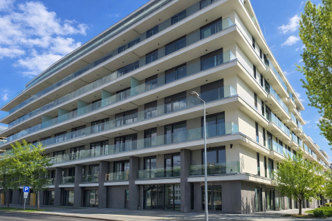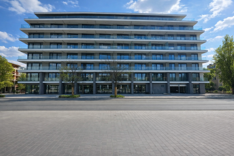 XIII. kerületben, Vizafogón, a Duna-part közelében, prémium kategóriás lakóparkban eladó egy 54 m²-es + 5 m² erkélyes, kétszobás, nyugati tájolású, I. emeleti új építésű lakás.