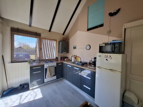 Helyiségek: nappali, közlekedő, fürdő-wc, szoba, előszoba, tágas konyha-étkező,
